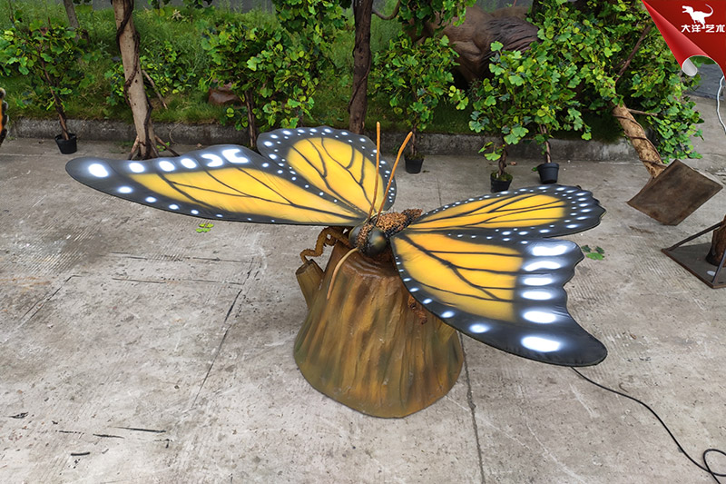 仿真蝴蝶是自貢大洋藝術(shù)有限責(zé)任公司-仿真恐龍制作工廠生產(chǎn)制作的。改仿真展品寬2米高1米左右,采用仿真恐龍技術(shù)制作,側(cè)才鮮艷、整體形象逼真。配合翅膀扇動可發(fā)出蝴蝶飛翔的聲音。該展品主要用于動物主題公園、商業(yè)活動展覽、游樂場等場所!