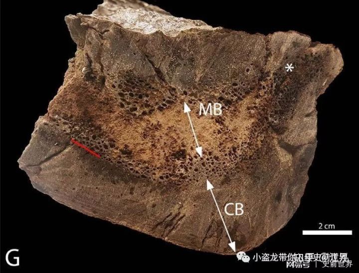 圖注:霸王龍股骨的切面,其中的MB指的就是髓質(zhì)骨,圖片來自網(wǎng)絡(luò)