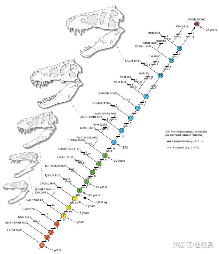 聲明:文章轉(zhuǎn)載自知乎 霸王龍一生分為21個(gè)階段,其中兩個(gè)階段最為關(guān)鍵! 作者:江泓