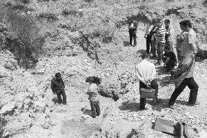 圖為“恐龍化石”發(fā)現(xiàn)現(xiàn)場。 王月 攝