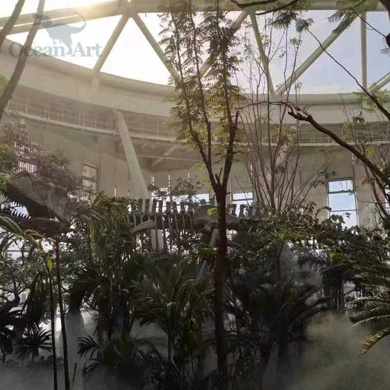 此次活動(dòng)的植物館建筑分為三層,一層設(shè)有熱帶植物溫室,占地約3000平方米,匯聚600多種珍貴植物。我司在展館中展示的巨型仿真恐龍骨架在周圍珍惜植物的映襯下顯得栩栩如生,給人仿佛回到侏羅紀(jì)的視覺沖擊感!展館通過一系列高科技創(chuàng)意手法,向參觀者充分展示“植物的智慧”,呼喚人類保護(hù)植物,關(guān)愛地球,關(guān)注人類的未來。